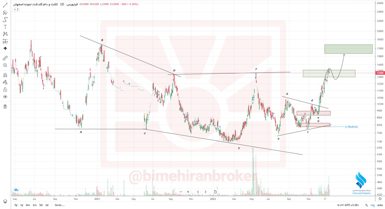 بر این اساس ؛ در تحلیل ارائه شده قبلی که در کانال کارگزاری نیز موجود است گفتیم شاخه G از زگلدشت در سطوح ۸۱۶ تومانی اتمام و بهبود تقاضا زگلدشت را به هدف ۱.۳۵۰ تومانی خواهد رساند. خوب است بدانید این تحلیل با برگشت قیمت از سطوح ۸۰۰ تومانی و رشد ۷۰ درصدی عینا محقق شد.